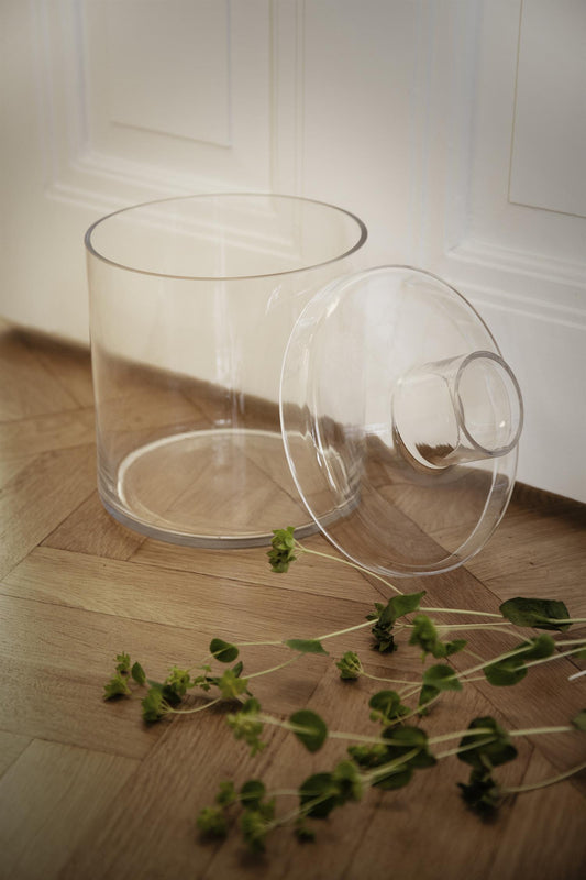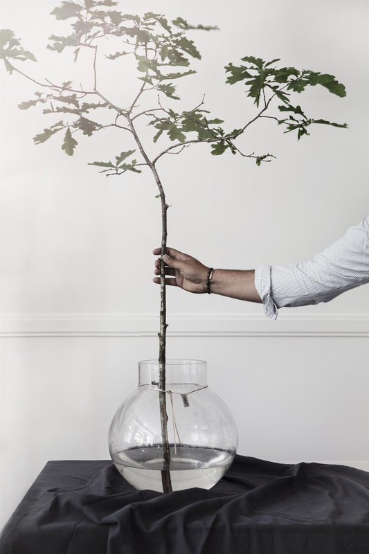 UtsolgtGlasvas rund 37cmx38cm läderband