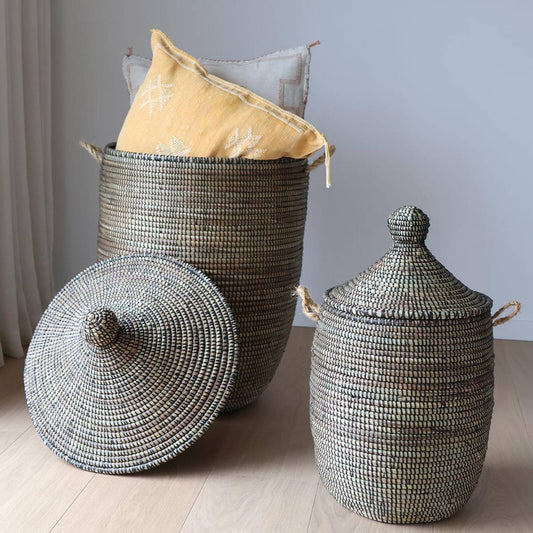 Timone Kurv m/låg, Natur, Vandhyacint Ø40xH57 cm