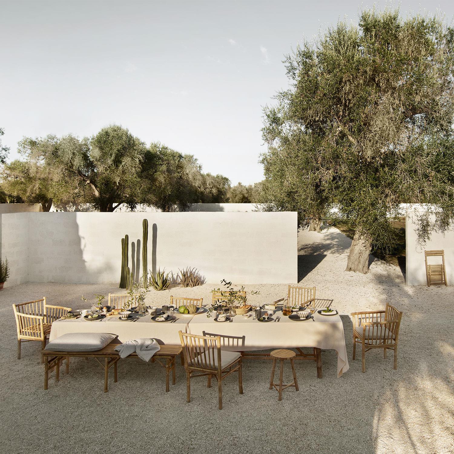 Våre bambusmøbler er behandlet med en vannbasert naturlig treolje, som gjør møblene mer motstandsdyktige mot vind og vær. Les mer om behandling og vedlikehold av bambusmøbler her: