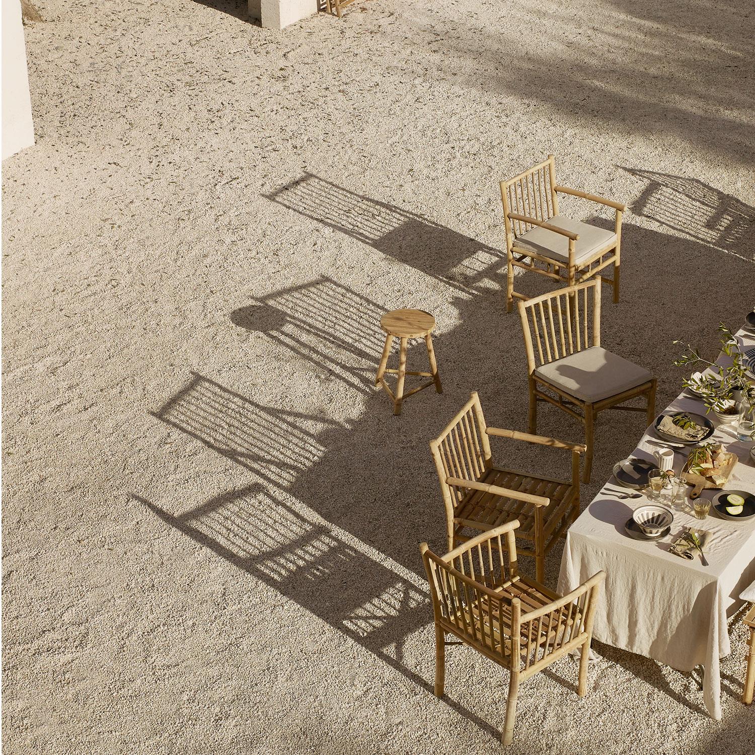Den enkle utformingen gjør stolen lett å integrere i et nordisk interiør. Du kan bruke stolen som spisebordstol, kontorstol eller som loungestol på terrassen. Bambusstolen kan brukes både innendørs og utendørs.