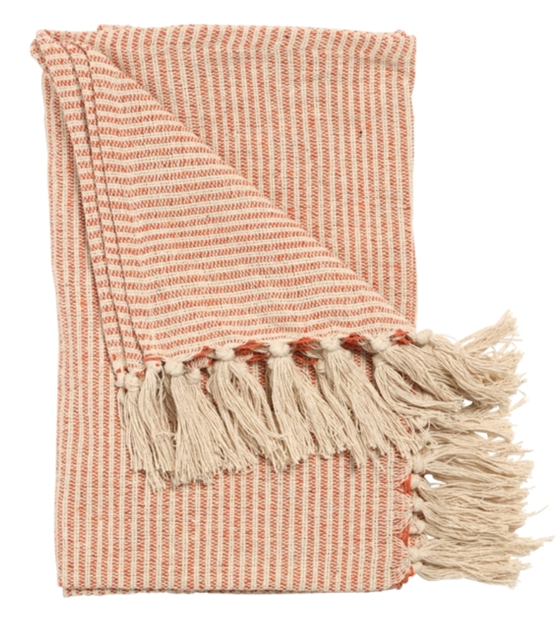 Plaid Vævet natur/orange 70x180cm