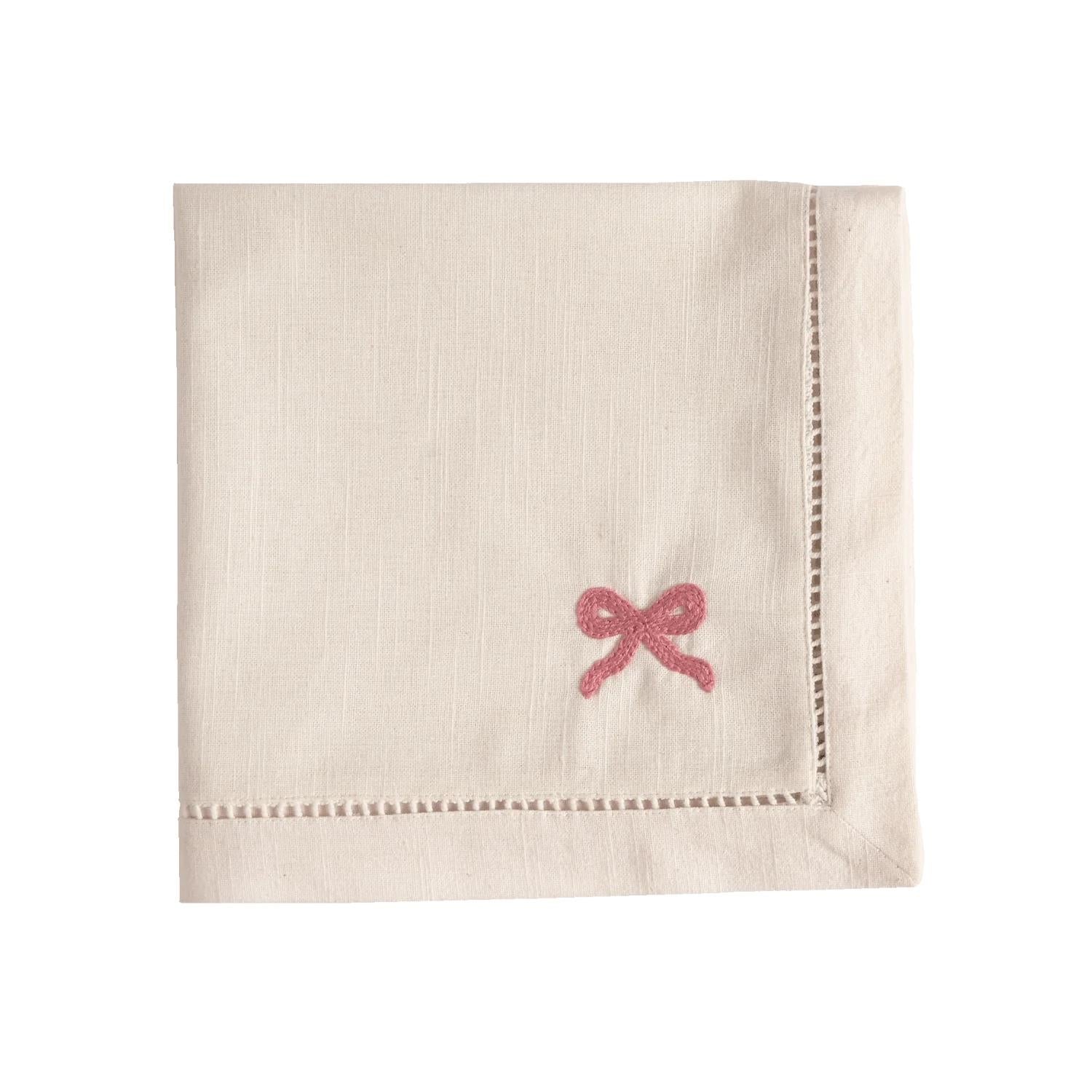 Enten du er vertskap for et formelt middagsselskap eller nyter et uformelt måltid i hagen, gir vår flørtende, men sofistikerte bueserviett et snev av leken eleganse til enhver anledning. Denne skarpe hvite bomullsservietten er håndlaget av 100 % bomull, delikat brodert for hånd med vårt ikoniske POPPY-sløyfesymbol.