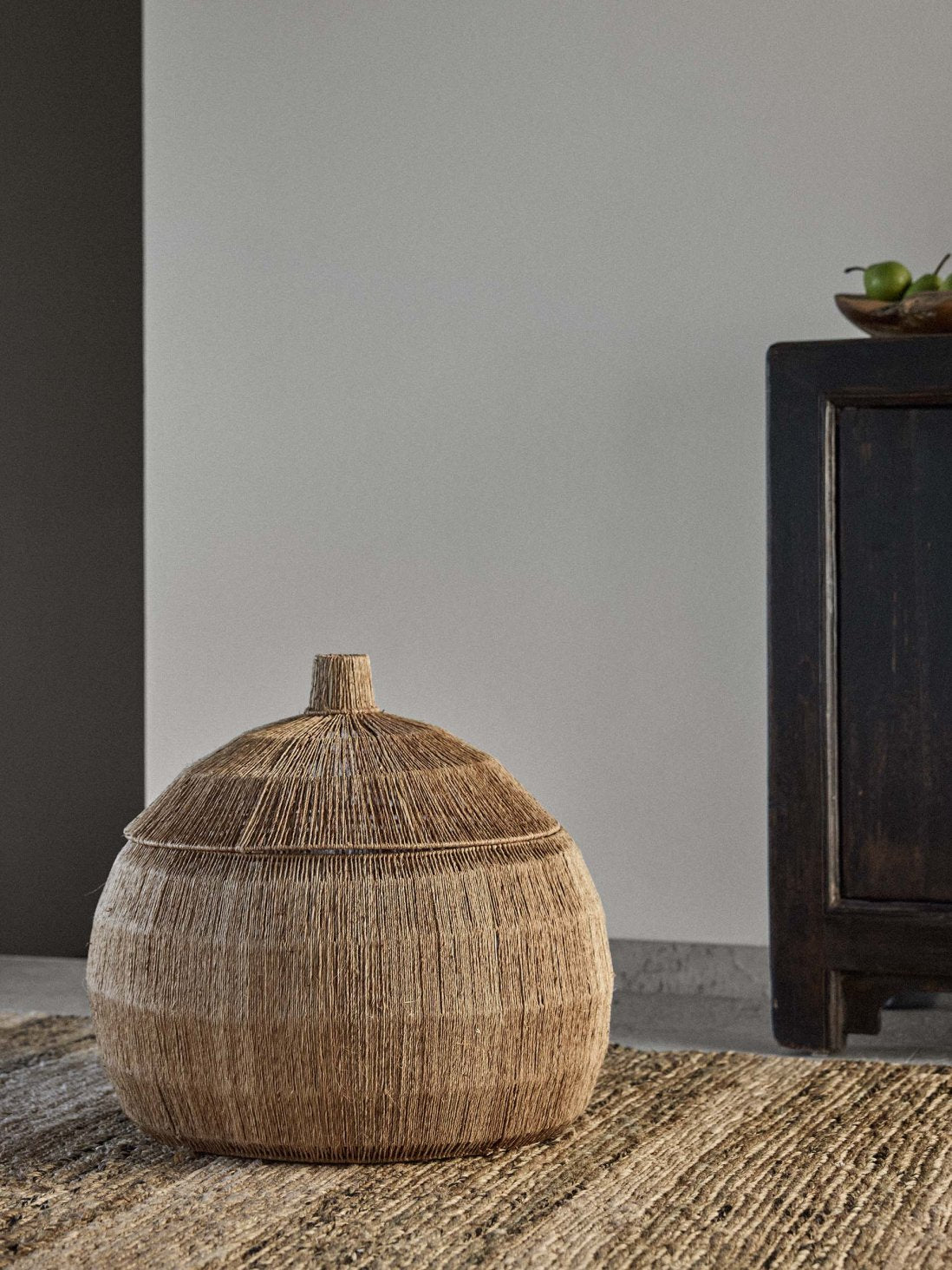 Kurv med lokk fra Tell me more. Håndlaget i jute.