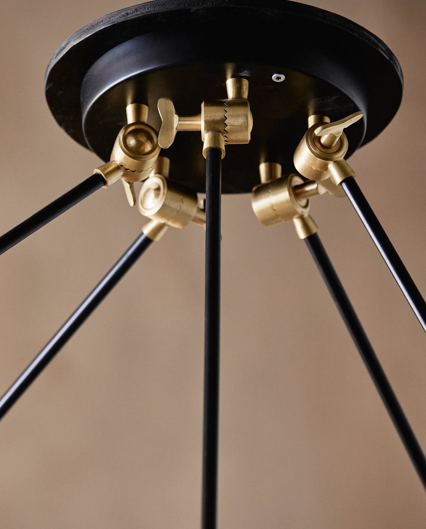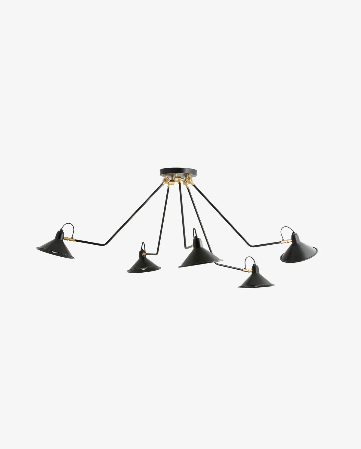 BRIMO pendellampe i svartlakkert jern med fem armer. En moderne pendellampe som passer inn i ethvert klassisk og stilig hjem. Bruk BRIMO i gangen eller over spisebordet for å skape et dramatisk blikkfang. BRIMO har et fengende utseende som tilfører raffinement til innredningen din, men pendelen er også et praktisk valg, ettersom den har et ideelt lysfall. BRIMO pendellampe monteres i taket, hvoretter armene kan justeres til ønsket posisjon.